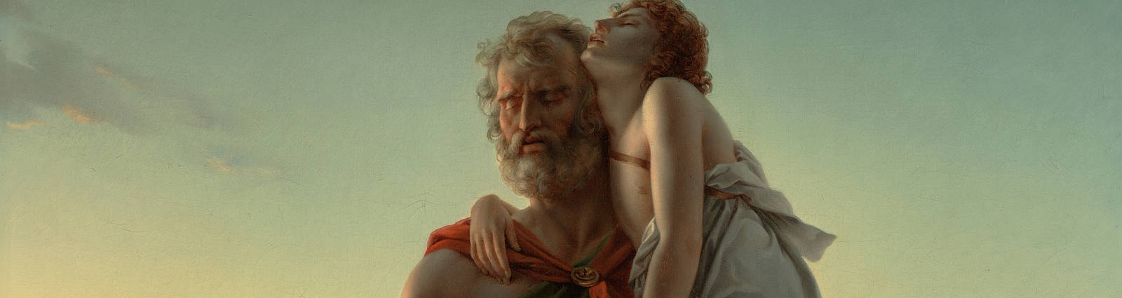 Obwohl die Zeitgenossen François Gérards Belisar romantische Qualitäten attestierten, gefiel er dem Erz­romantiker Delacroix nicht: »Das Geschick eines großen Kriegers, der zum Bettler wurde, den der Tyrann, dem er alle seine Dienste weihte, des Augenlichts beraubte und der als Stütze nur ein schwaches Kind besitzt, gibt ein genügend poetisches und anziehendes Bild. Es konnte durch ein so kleinliches Detail wie diese Schlange nur verlieren. Auch der Führer, der von dem, den er führen sollte, getragen wird, mißfällt mir.« Gérard hatte in der Tat mit Bélisaire portant son guide piqué par un serpent im Salon von 1795 für Furore gesorgt, weil er die von seinem Lehrer Jacques-Louis David etablierte Ikonographie revolutionierte: Gérards trotz seines Handicaps tatkräftiger Belisar stimmt keine wehmütige Klage über den Undank der Großen dieser Welt an. Der Blinde trägt vielmehr den zwischen Tod und Leben schwebenden Epheben in eine bessere Zukunft. Gérards Belisar ist als monumentales Emblem für die émigrés gelesen worden, die nach der Exekution des Terreur-Regimes in ihr Vaterland zurückkehrten. Doch der Hoffnungsmoment liegt nicht in der Heimkehr: Belisar als Nothelfer Christophorus kehrt dem vom Sonnenuntergang trikolorisch eingefärbten Himmel über Frankreich, das einen Flächenbrand des Terrors hinter sich hat, und damit der revolutionären Vergangenheit den Rücken zu. Er wird zu einem neuen Laokoon, der hier seinen Sohn in eine ihm noch nicht einsehbare Zukunft zu retten versucht, die in der Zeit und im Raum des Betrachters liegt.