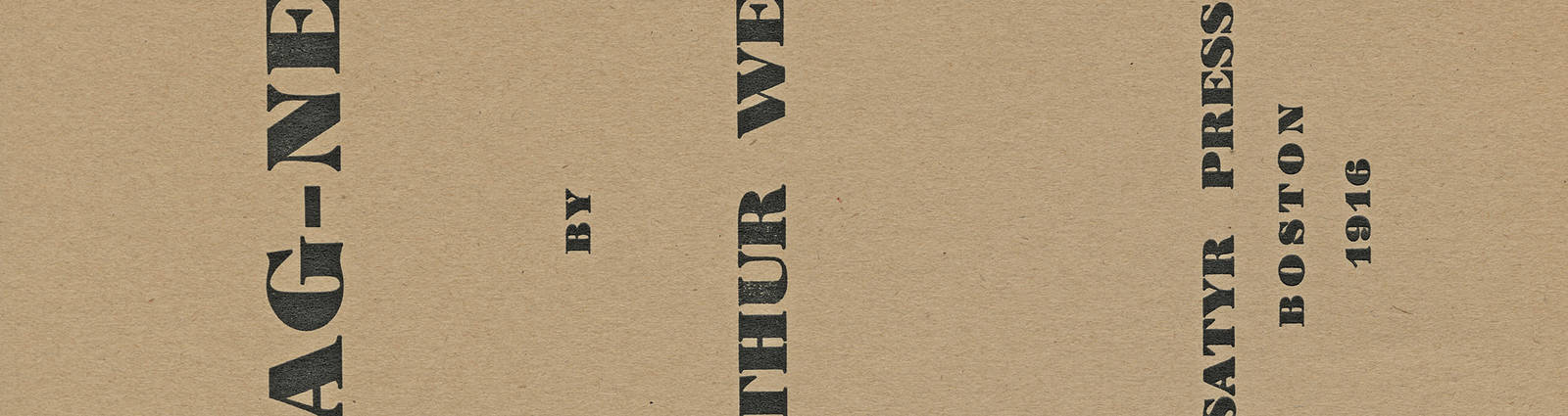 Es mag der schlichten Gestaltung dieses ­Buchumschlags geschuldet sein, der keine Auskunft über Genre und Inhalt gibt, und der in zeitlosen Versalien gesetzten fetten Type, die unter dem sprechend verführerischen Titel einen vertraut unbekannten Autor nennt, dass man sich über die eigene Ignoranz nicht hinwegtäuschen kann und sich vornimmt, der legendär anmutenden Bostoner Satyr Press nachzuspüren. Die Recherche ergibt, dass Arthur Wests Drag-nets kaum als erfolgreicher Titel des Bücherjahres 1916 gelten kann und Satyr Press der nach ausschweifender Avantgarde klingende Name eines Verlags ist, dessen Geschichte wohl für immer ungeschrieben bleiben wird.